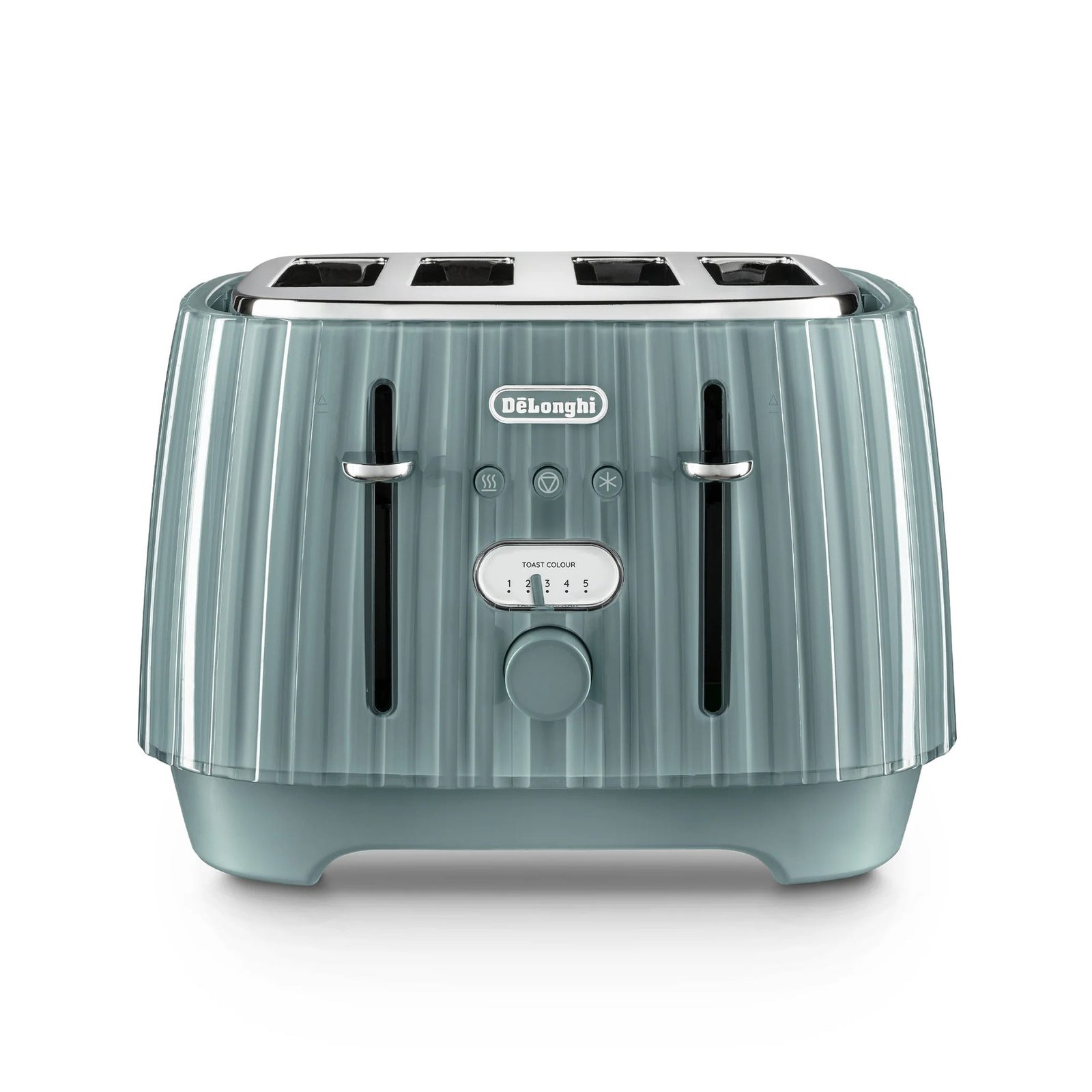 Get ready for perfect toast every time with the Delonghi Ballerina 4 Slice Toaster Laguna Green! With four wide slots that can fit thick-cut bread and bagels, and unique textured styling, you’ll be amazed by the quality results of this stylish and dependable toaster. Ignite your morning routine with the Ballerina Toaster!