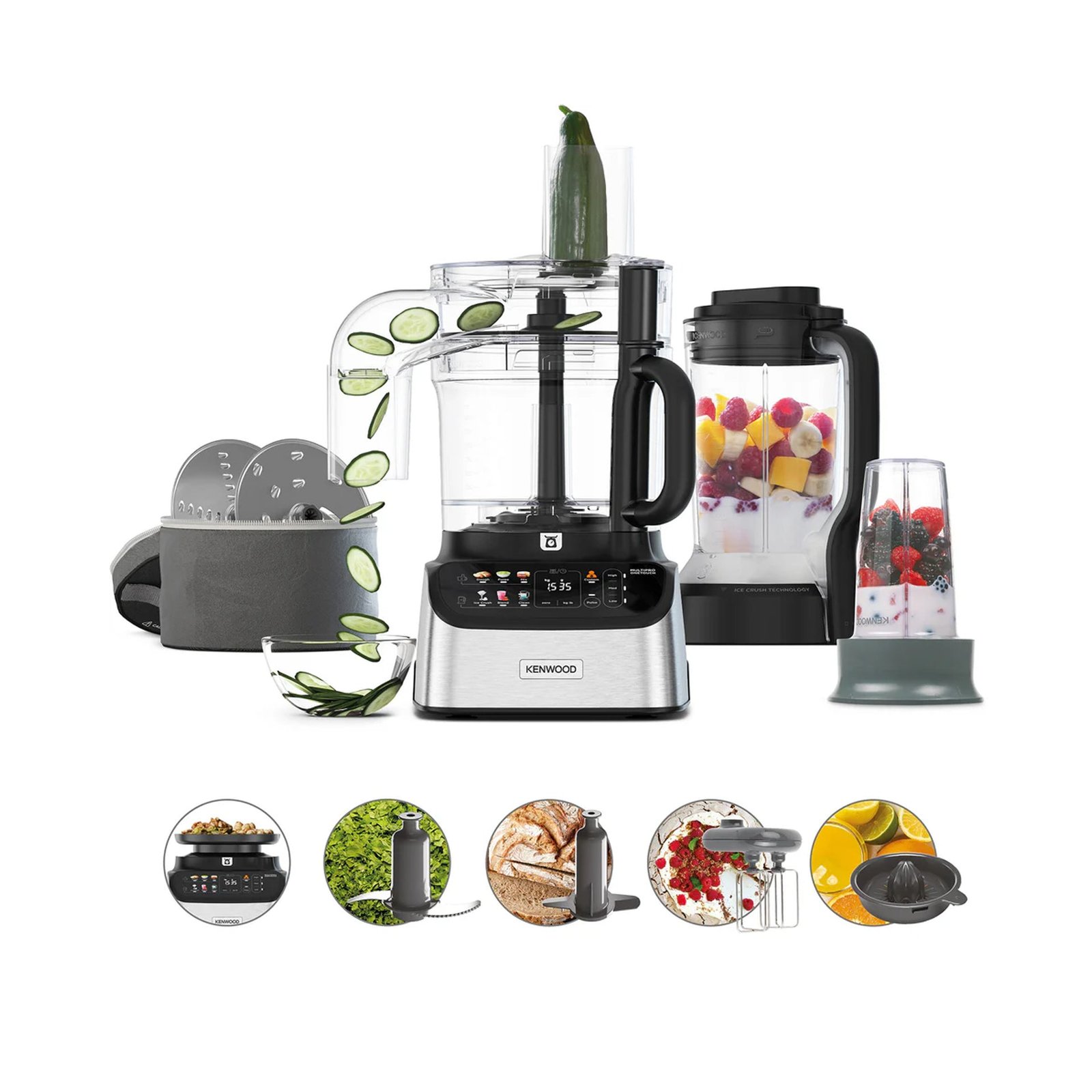 Simplify your cooking with the Kenwood MultiPro OneTouch Food Processor & Blender in Black. This versatile 3-in-1 appliance combines a food processor, blender, and personal blender, letting you weigh, mix, knead, purée, chop, grate, slice, blend, juice, whisk, and crush ice effortlessly. With one-touch controls and preset functions, preparing fresh meals becomes faster and easier—no more fuss, just wholesome food ready in moments.