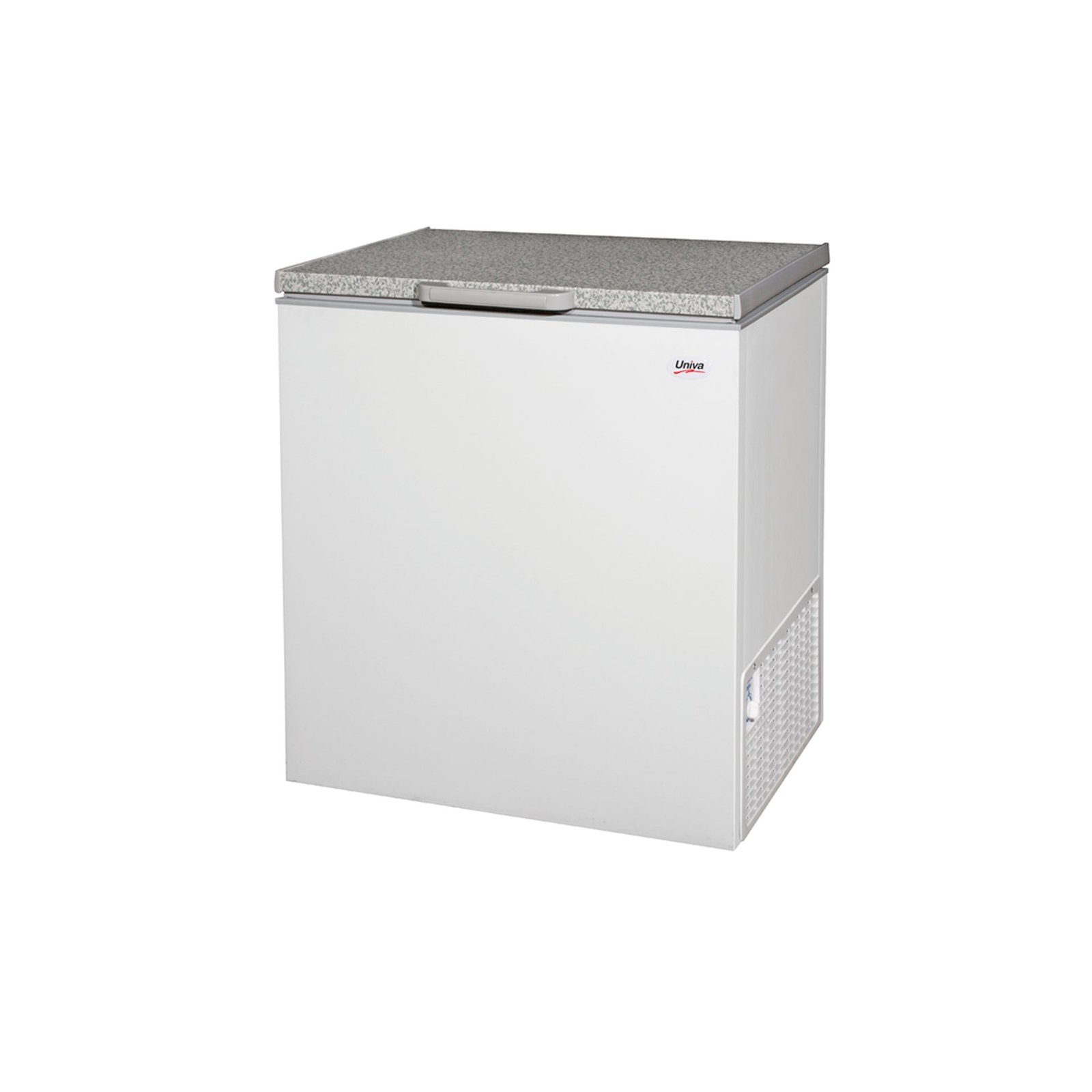 Introducing the Univa 210Lt Chest Freezer White, the ultimate storage solution for any household. With a total capacity of 194L and a C energy rating, this freezer offers ample space while being energy-efficient. The multi-mode thermostat and extra-large wire basket make organizing and accessing your items a breeze. The durable design, including a marble pattern top and high-quality plastic hinges, ensures long-lasting use. Upgrade your freezing game with Univa!