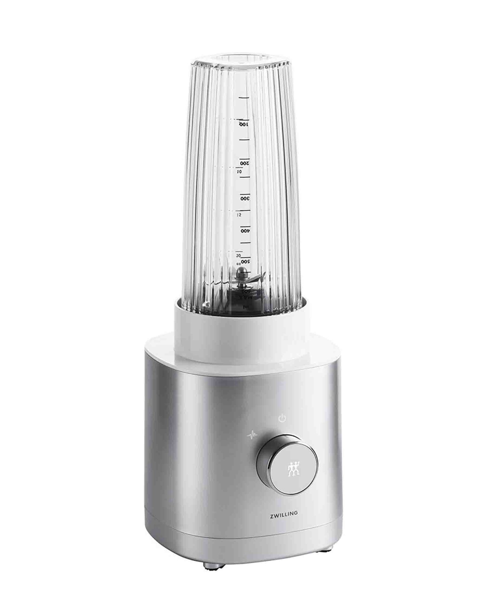 The ENFINIGY Personal Blender is more than just a smoothie maker. With the original ZWILLING cross blade – newly developed in Solingen – the high-quality kitchen blender always offers the finest blended results. Even nuts and ice cubes are no match for the stainless steel blade with its special serrated edge and piranha teeth. With the practical to-go drinking bottle made of BPA-free Tritan, ready-blended drinks can be easily taken with you. In addition to the smoothie program, the pulse feature can also be selected with the intuitive rotary dial. It is suitable for short, manual blending or a post-blending blast for even finer results.
